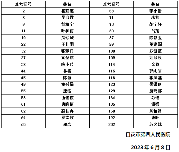 现将自贡市第四人民医院2023年临床护士拟录用人员公示如下: