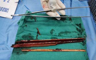 6月24日,市民刘大爷经历了人生一次重大灾难,一根长约40厘米的竹块插进了他的右侧腋窝,直达咽喉,导致他血流不止,生命垂危。所幸的是,他被120急救人员紧急送往了自贡市第四人民医院,在全院9个科室,30余名专家的共同协作和努力下,历经7个多小时的紧张手术,成功于次日凌晨2时许,为其取出了体内的竹块。