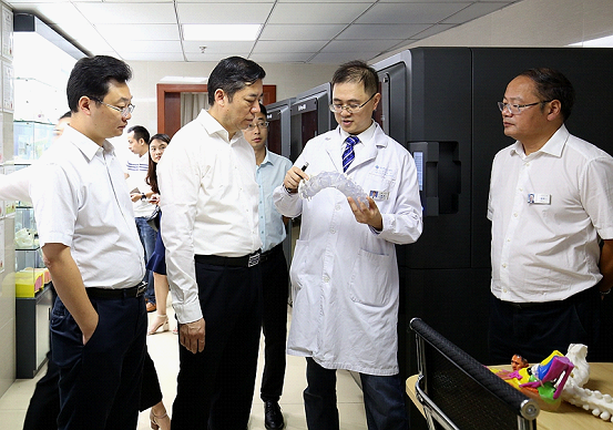 调研组一行先后到急诊科、胸痛中心、卒中中心、120指挥中心、数字医学中心、病员服务中心实地查看,就急诊急救信息化平台建设,危急重症救治能力处置,医学三维建模、手术规划、手术辅助工具研发、个体化植入物设计等数字化技术联合3D打印技术的临床应用工作进行了详细了解。