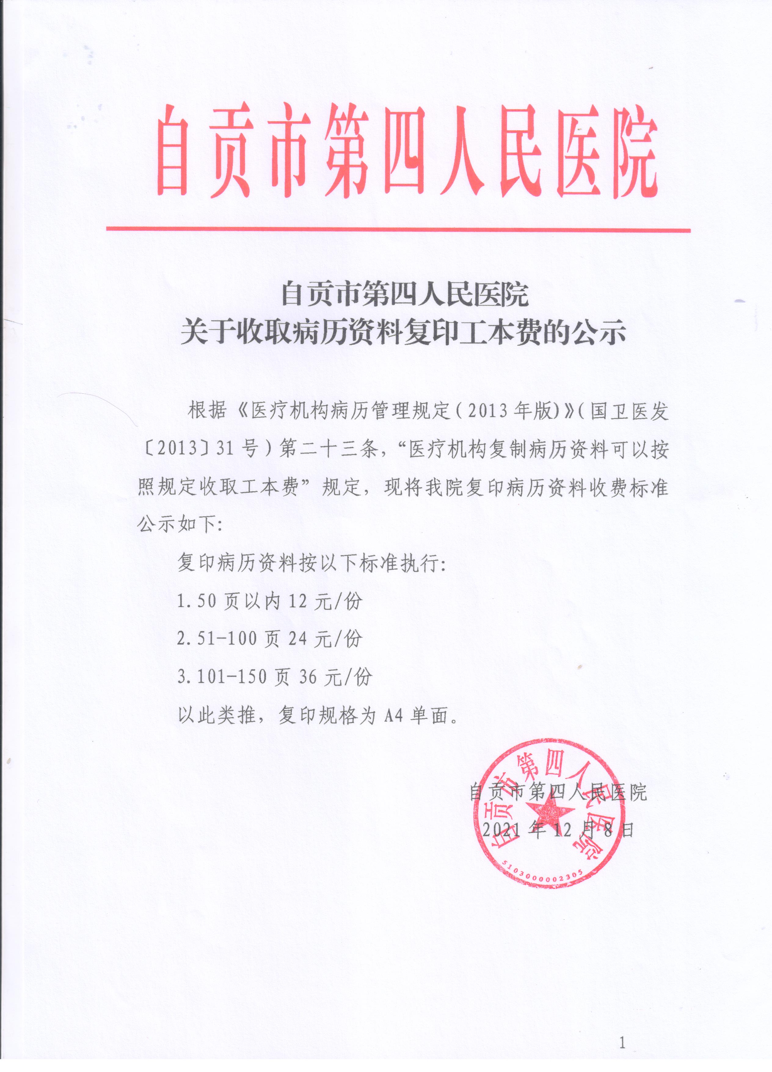50页以内12元/份,51-100页24元/份,101-150页36元/份,以此类推;复印规格为A4单面。