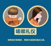 咳嗽和打喷嚏时使用纸巾或屈肘遮掩口鼻,防止飞沫传播。不要随地吐痰,应将口鼻分泌物用纸巾包好,弃置于有盖垃圾箱内。