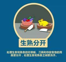 养成良好安全饮食习惯,处理生食和熟食的切菜板及刀具要分开,家中肉蛋要充分煮熟。