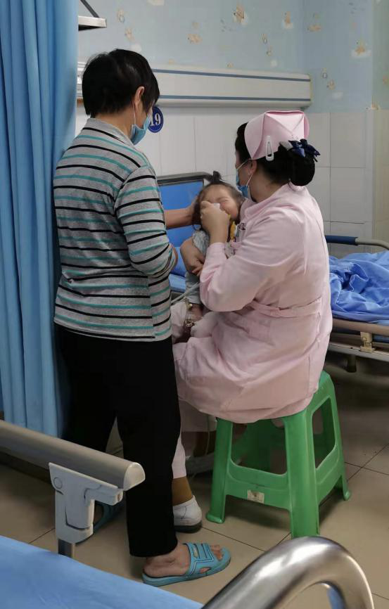 儿科的小患者们大的也才十几岁,有的“小不点儿”是出生才几个月的新生儿,病情变化快、言语表达能力弱,这对护理工作一直是一个很大的挑战。儿科副护士长董琴,平时的她工作风格是严肃认真、一丝不苟,在疫情面前,她表现出来的更是勇往直前、义无反顾的巾帼风采。她和她的护理团队严把护理安全关,对病区无死角防范。设置层层安全关卡,严格消毒管理,保证病房环境安全,最大限度保障住院患儿的生命健康。 利用早交班会、护理人员例会,大家积极学习新冠肺炎相关知识、感控知识、防护知识。科室制定了适合儿科特点的各项护理工作流程,确保了个人防护到位、病房标准预防到位、各种护理操作安全到位。每天,儿科护士们都到床边为患儿和家长做疫情防控知识宣教。 因疫情防控需要,每个患儿只能留一个陪护。护士们就主动帮助她们照料孩子。家长们去打饭、洗衣服时,不管离开病房多长时间,护士们一定会寸步不离地守在孩子身边,帮忙打水更是常事儿。
