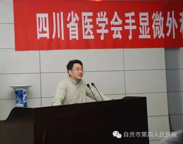 自贡市第四人民医院成功举办手显微外科专委会科技下乡活动自贡站巡讲暨2015年自贡市骨科年会时间:2015-12-14 浏览量:5624 来源:钟泽莅 张玉兰 作者: 为规范基层医疗机构手显微外科诊疗技术,近日,由四川省医学会手显微外科专业委员会、自贡市医学会,自贡市第四人民医院共同举办的“四川医学会手显微外科专委会科技下乡活动自贡站巡讲暨2015年自贡市骨科年会”在市四医院多功能厅举行。市四医院副院长杨昆出席会议并向各位来宾致欢迎辞。