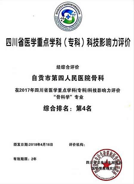 科技影响力综合排名全省第四,厉害了自贡四医院骨科!时间:2018-04-23 浏览量:6121 来源:陈彦名、黄浩 作者: