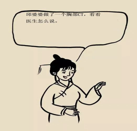 65岁邱婆婆,主因”咳嗽、咳痰2+月”来我科住院,主要表现为2+月前,受凉后出现咳嗽,咯少许黄白色粘痰,伴心累、气促,无畏寒、发热及胸痛、盗汗、喘息,病初患者未引起重视,自购药物服用,症状持续加重无缓解,后于当地医院予以输液治疗7天,上述症状无好转,遂入我院。