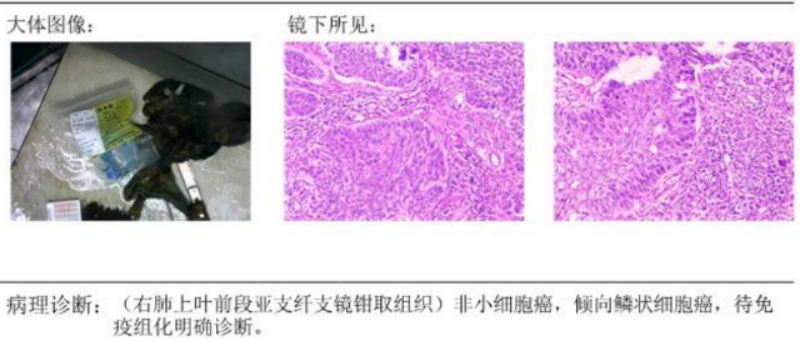 最终右肺鳞癌诊断明确,病人后续进行了抗肿瘤治疗,目前治疗效果良好。