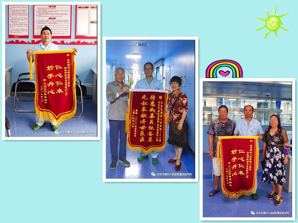 宋婆婆和张爷爷都曾是我们科室的病人,他们都有着同样的经历,因为呼吸衰竭,急诊收入我科进行治疗,他们都曾长时间的经历了气管插管和反复的脱机困难,但最终在ICU全体医护人员的共同努力下,他们战胜了病魔,顺利的转出ICU,如今的他们更是亲自携着锦旗来到我们科室,表达对全体医护人员的感激之情。 虽然在ICU里的大部分患者都是插着管,安安静静的躺着的,但是对于清醒的患者,我们会给予更多的心理关怀,让病人重拾恢复健康的信心。李婆婆是一名肾结石患者,反复多次住院治疗后,因病情危重转入我科进行后续治疗,她多次尝试停用呼吸机不成功,最后经过ICU全体医护人员的共同努力,终于顺利停机拔除气管插管,现转出了ICU病房。