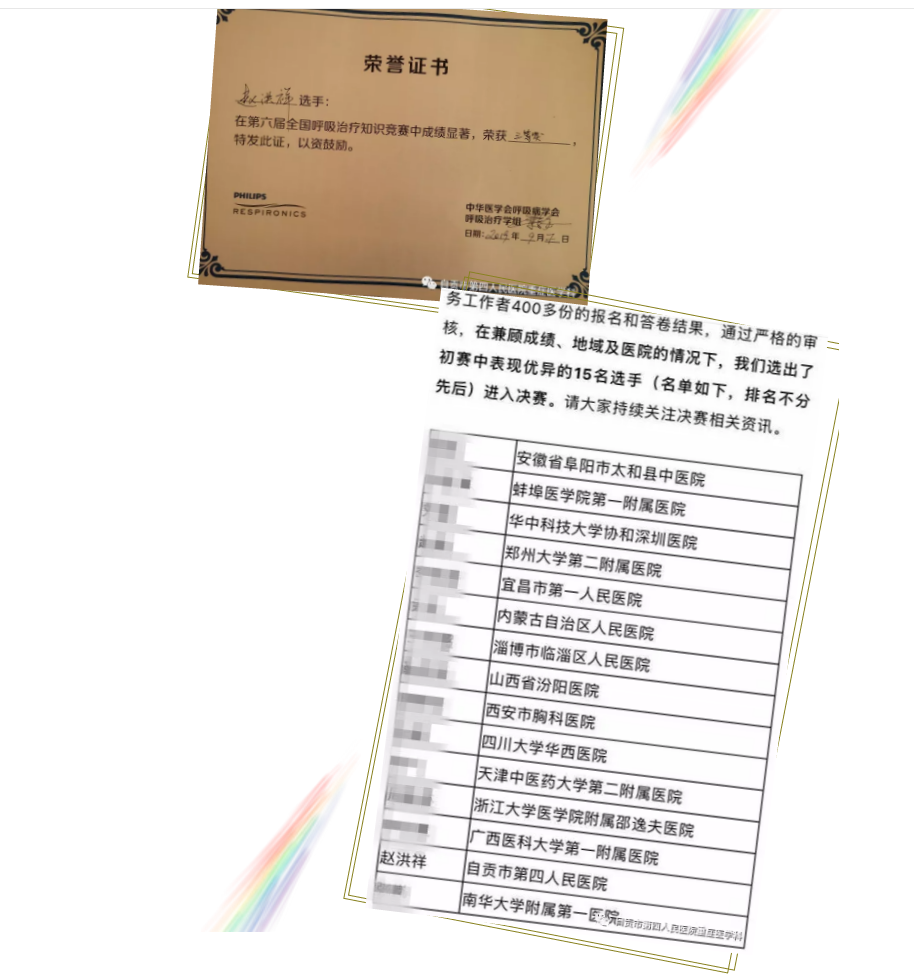 自贡市第四人民医院ICU护士赵洪祥从初赛的400名选手中脱颖而出,最终作为15名决赛选手之一,代表我院参加第六届全国呼吸治疗知识竞赛。备赛期间,他仔细查阅各类文献,虚心请教呼吸治疗专家,最终斩获三等奖的佳绩。