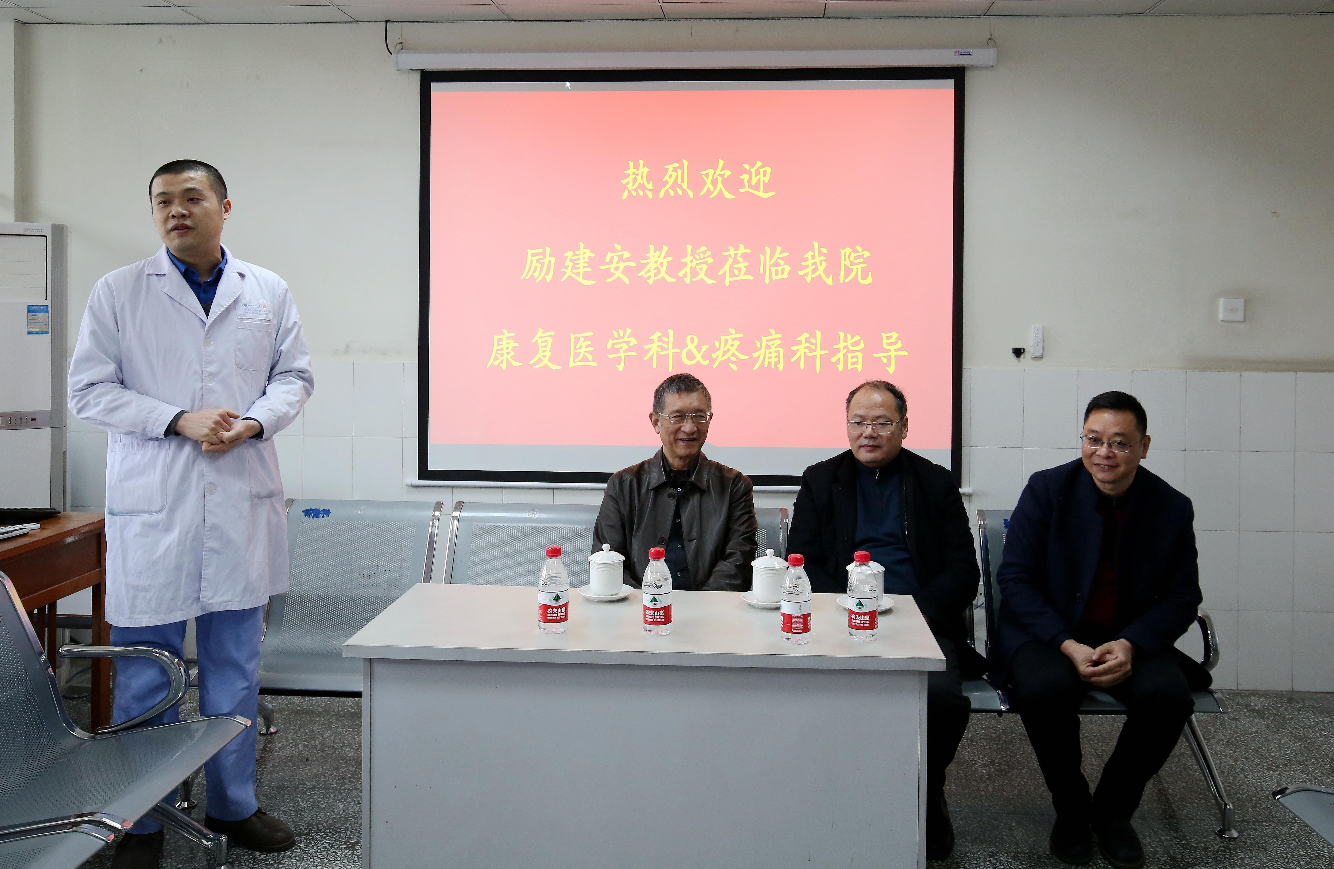 励建安教授到自贡市第四人民医院 康复&疼痛科指导工作时间:2019-02-26 浏览量:4477 来源: 作者:2019年2月23日在卫生康复职业学院,中国康复医学界“泰斗”励建安教授为自贡康复人分享了一场顶级视听觉盛宴---《以功能为轴心的临床思维》,偌大的阶梯教室座无虚席,全程2个半小时的讲座引来现场师生无数次轰鸣般的掌声。 下午,励教授莅临我院康复&疼痛科指导工作,令科室蓬荜生辉。我院院长刘建辉同志全程陪同励教授对科室的病房、治疗室以及相关的医疗设备情况进行了参观指导。 ![]()