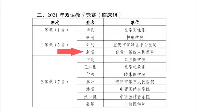 赵薇主治医师获西南医科大学双语教学竞赛二等奖
