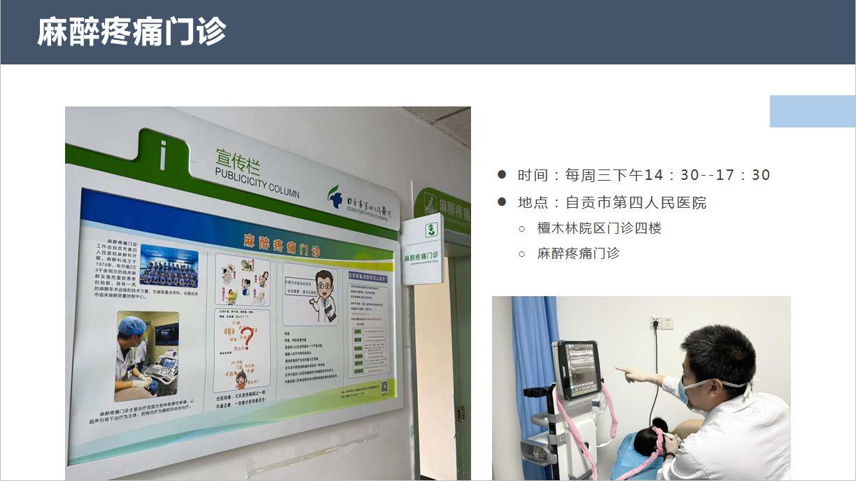 麻醉疼痛门诊工作由自贡市第四人民医院麻醉科开展,麻醉科成立于1974年,具有一流的麻醉手术设施和技术力量,为省级重点专科和省级临床重点专科,也是自贡市临床麻醉质量控制中心。