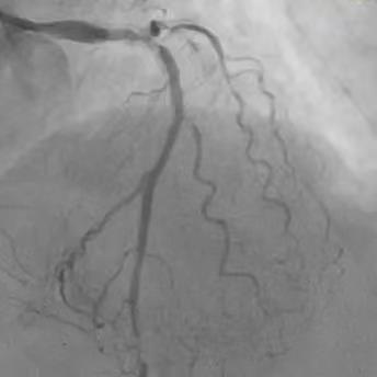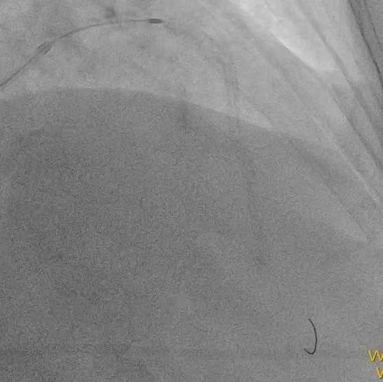 患者74岁,10年前因胸痛诊断为冠心病,在外院放过支架,但当时医生即明确告知家属,血管最严重的“总开关”左主干的地方钙化分叉,处理起来太危险,只是把难度相对不高的血管放了支架。近年来患者间断胸闷、胸痛,伴有心衰下肢肿胀,辗转来我院。冠脉CT显示冠脉严重钙化,因此安排冠脉造影检查。 ![]() ![]() 术前CTA提示左右冠支架术后且左主干重度钙化 (主干没有支架) 冠脉造影