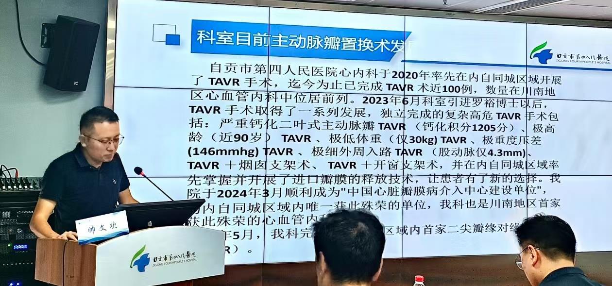 由于人口老龄化和生存率提高,瓣膜性心脏病(VHD)的患病率正在全球范围内增长,心脏瓣膜病的治疗方法日新月异,新的技术手段层出不穷,尤其是微创的介入治疗正在使越来越多的瓣膜病患者受益。为促进我市瓣膜病的规范化诊疗,普及瓣膜病的最新治疗理念,并联合推动医联体胸痛单元的建设,自贡市第四人民医院心内科于2024年08月23日举办了“心脏瓣膜病介入治疗进展暨胸痛单元建设论坛”,邀请了自贡市内、外多名专家主持点评,邀请了市内各县、区、乡镇卫生院共计100余名医务工作者共同参与讨论。大会由自贡市第四人民医院何昌国副院长致辞,心内科主任罗裕主持。