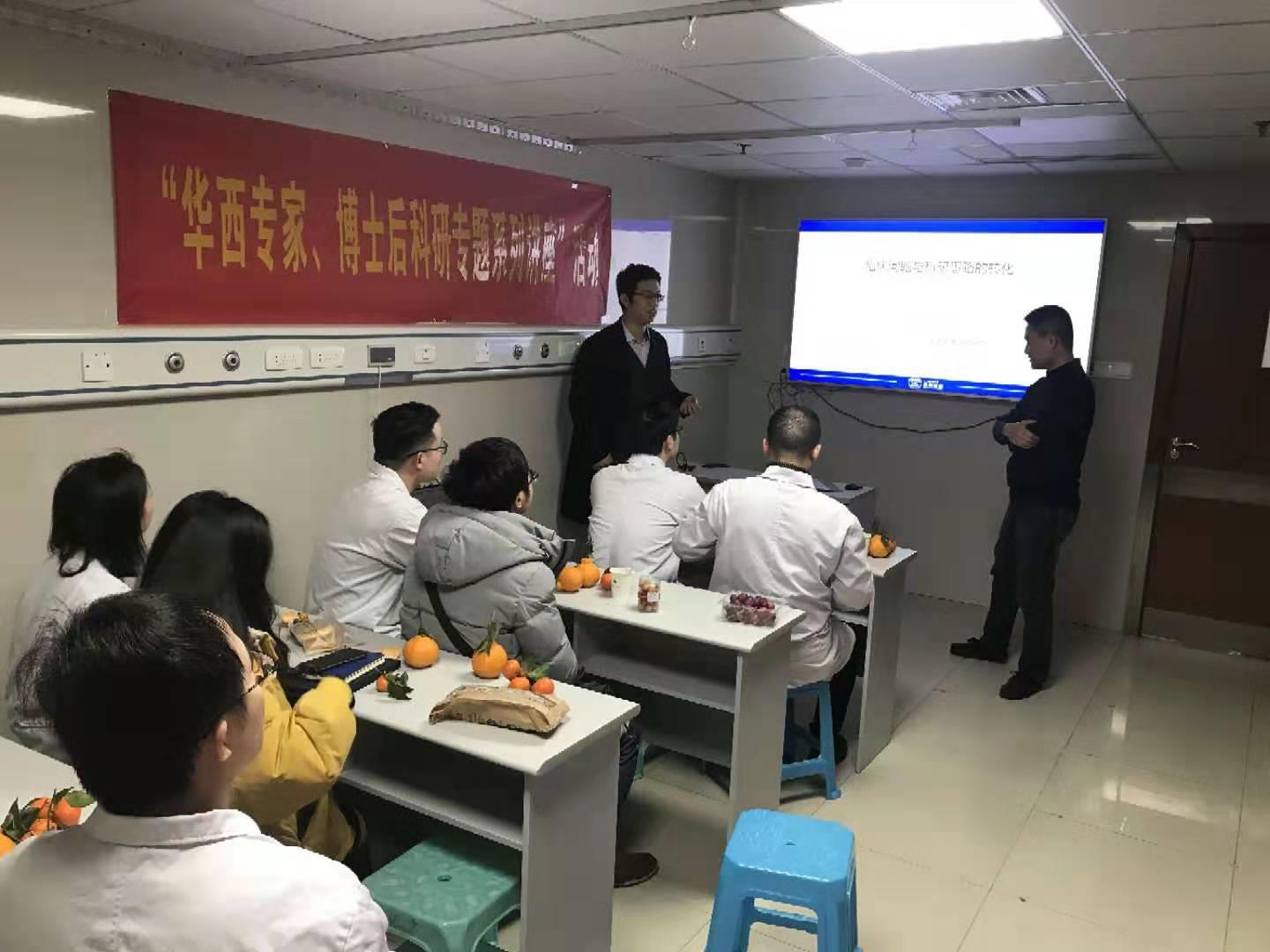 栽下梧桐树,引来金凤凰,普外2科今年在床位仍然紧张的情况下,专门改造建成科室学习室,配备了75寸4K大屏幕电视,将利用周末的时间开展“华西专家、博士后科研专题系列讲座”,第一期邀请了陈心足副教授来讲授临床科研思路,小伙伴们可是备受鼓舞,跃跃欲试呢,接下来还有第二期,第三期讲课,不禁有点小期待哦。