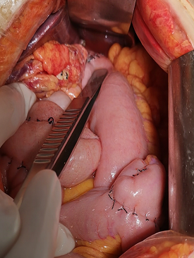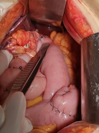 消化道的重建是术后恢复消化道生理功能和运动能力的基础。重建的消化道需要具备一定的空间以储存食物,使食糜可以通过十二指肠,具有防止反流的基本功能。而全胃切除术后患者丧失了胃研磨、分解食物等功能,脂肪的乳化过程不充分,极大地降低了营养成分在肠道内的吸收,导致患者营养状态不佳。同时全胃切除术后可导致消化过程过短,诱发胰腺相关酶类、胰岛素等分泌滞后,从而引发吸收功能减弱或紊乱,是患者出现营养状态不良的重要因素。患者因营养状态不良而出现体重大幅度下降、自身免疫功能减退,甚至脏器功能、肌力等减弱,从而影响患者的健康甚至危及生命。 1988年Aikou首次报道双通道吻合术,有以下优点:①具有良好抗反流作用:间置空肠机械性顺蠕动可抵抗胃酸反流,碱性环境可中和反流胃酸。②保留了十二指肠径路,有助于消化道神经-内分泌功能恢复。③相对独立的双输出通路:食糜分流通过,残胃储袋作用及幽门功能可防止倾倒综合征;即使一通路因肿瘤复发或胃瘫而梗阻, 食糜可经另一通路通过,减少反流机会,避免短期再次手术。 近端胃切除后大多数患者因胃食管交界处解剖结构改变,会出现不同程度的胃酸返流致返流性食管炎、长期刺激可能出现癌变,严重返流症状致患者生不如死,严重影响患者生活质量。为减轻近端胃切除后患者返流症状,我们开展了该项高难度手术。目前我科已成功独立实施2列手术,该技术为自贡地区首次开展。