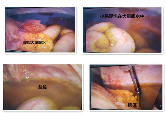 吸取腹水后腹腔探查情况
