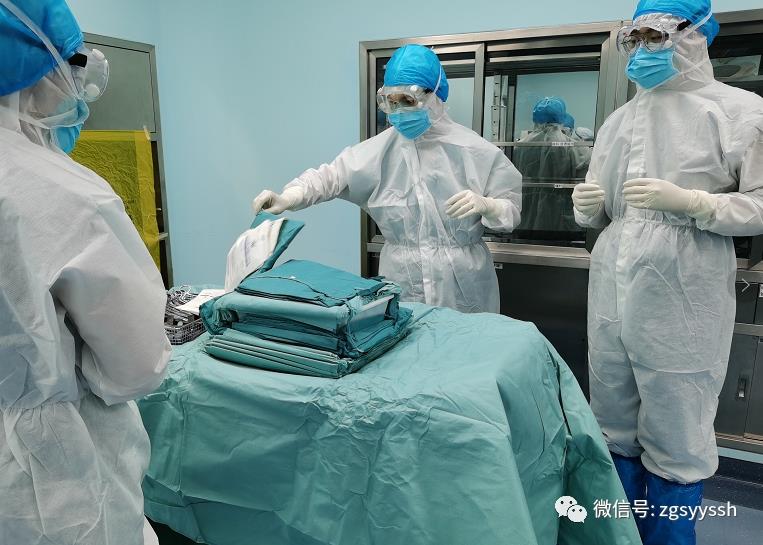 接病人前做好一切防控措施,穿好防护服,设立临时通道接病人至手术间,相关人员全部做好三级防护。经过的通道、电梯都需要经过严格的消毒处理。