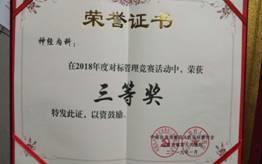 荣获先进集体是医院对神经内科在2018年度工作上的肯定和鼓励,我们十分感动和珍惜这份荣誉,在2019年的工作中,我们依旧会砥砺奋进,为百姓健康做出新贡献! 2018年度对标管理竞赛中荣获三等奖