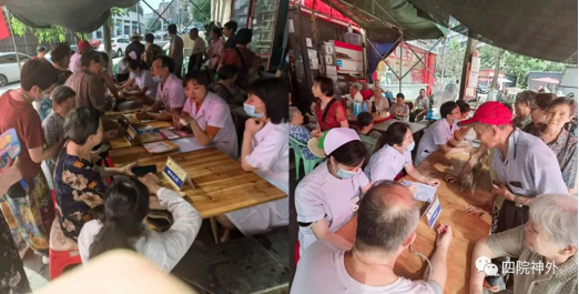 该活动由神经外科组织,神经内科、烧伤科、内分泌科共同参与。活动现场,医务人员耐心的为现场群众量血压、测血糖及发放一些常见病预防的宣传资料等。专家们细致的询问前来咨询的群众症状及发病史,并针对不同情况给出个性化的健康指导。针对目前高血压、糖尿病、脑卒中等的患病率显著增高的现象,专家们还提出科学饮食建议,提醒其改变不良生活习惯,定时监测血压、血糖,并告知他们如有头昏、头痛,心慌、出汗,言语不清、口角歪斜等症状,及时到医院进行治疗,并提供用药指导。