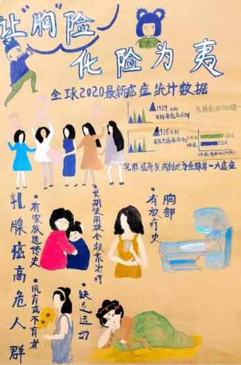 4月15日,自贡市第四人民医院肿瘤科护士陈茂霞手绘宣传海报《让“胸险”化险为夷-如何预防乳腺癌》,荣获四川省第二届肿瘤防治科普比赛(图文类)优秀奖。通过图文形式,非常形象地为大家讲解了乳腺癌的高危因素、自我检查方法及预防措施。