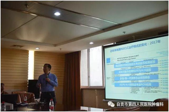 “肿瘤多学科治疗培训班”在我院召开时间:2017-12-01 浏览量:5445 来源:自贡市第四人民医院 作者:2017年10月28日,由自贡市医学会肿瘤专委会、自贡市放射治疗质量控制中心主办,第四人民医院肿瘤科承办的“肿瘤多学科治疗培训班”在汇东医院学术会议厅正式召开。 本次会议邀请了华西医院及成都军区总医院的多位专家进行了专题讲座,对肺癌、淋巴瘤、乳腺癌治疗的难点和热点进行了充分的互动式探讨。来自市内外从事肿瘤学及相关领域研究的专业人员100余人参加了此次会议。 自贡市医学会肿瘤专委会副主任委员蔡典琨主任担任大会主席。会上,自贡市第四人民医院党委书记、副院长杜冲进行致辞。杜冲书记表示,肿瘤的治疗发展突飞猛进,完整的MDT多学科诊疗模式,MDT模式的推行,对于患者而言意味着更好的治疗效果和更优质的就医体验,对于医生来说也是一条快速成长的学习平台。本次会议促进了自贡地区肿瘤相关领域专家的合作交流,推动治疗手段的进步。MDT学术研讨会议,更多同行参与,最终将使更多的患者受益!