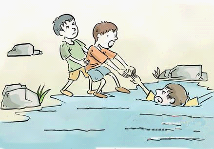 孩子被救上岸后,使孩子头朝下,立刻撬开其牙齿,用手指清除口腔和鼻腔内杂物,再用手掌迅速连续击打其肩后背部,让其呼吸道畅通,并确保舌头不会向后堵住呼吸通道。