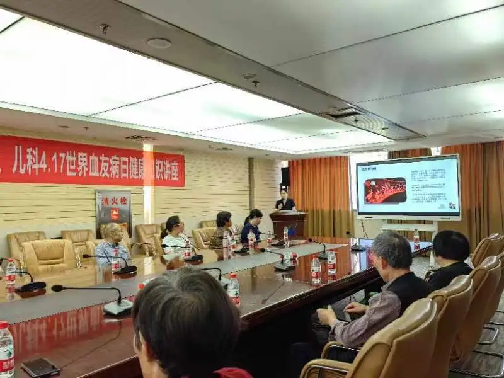 然后,儿科副主任医师周宏围绕儿童血友病的发病原因、预防、护理、合理用药等多个方面的内容进行主题讲座,同时与血友病患者及家属进行了热烈的互动交流。会后家属送来锦旗,感谢儿科医务人员长期的关心和帮助。
