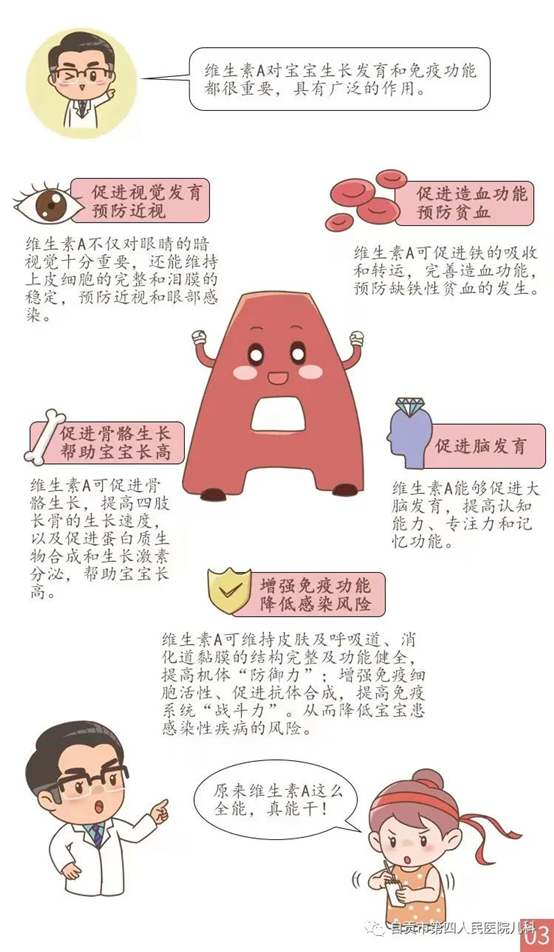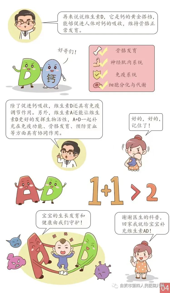 今天我们就来进一步了解一下宝妈们关注的维生素AD(也就是大家口中的“鱼肝油”)~维生素A和维生素D作为两种重要的脂溶性维生素,与儿童健康关系密切。充足的维生素A、D营养对儿童早期发展及疾病的防治具有积极的作用,缺乏和不足均会影响儿童健康。