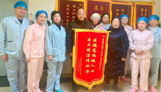 2月16日,是个可喜可贺的日子,孩子出院了,准备回到爸爸妈妈身边了!为表达心中的感激之情,孩子父母和奶奶特地送来一面印着“医德高尚暖人心,医术精湛传四方”的锦旗。“感谢你们救了我孩子的生命,你们真了不起,不愧是救死扶伤的白衣天使。”握着医务人员的手,孩子家长激动地说。重度窒息合并胎粪吸入性肺炎,属于新生儿疾病中救治难度高,死亡风险极大的危重病例。孩子的成功救治,不仅体现了医护人员的治疗技术和护理水平,也体现了医务人员的责任心和爱心,同时与家长的坚持和高度信任分不开。这也是一例良好医患配合的典型范例,为了孩子,四院儿科人永远和家属齐心协力,护佑健康!