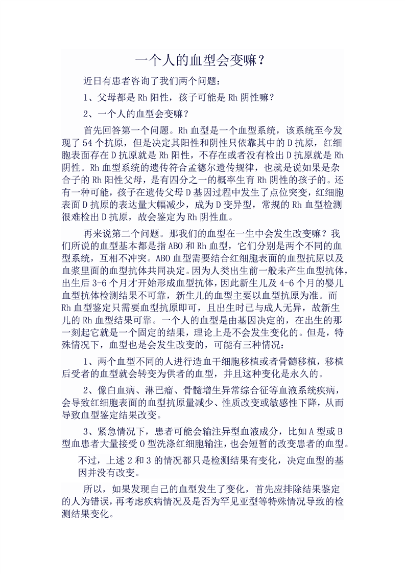 一个人的血型会变嘛?