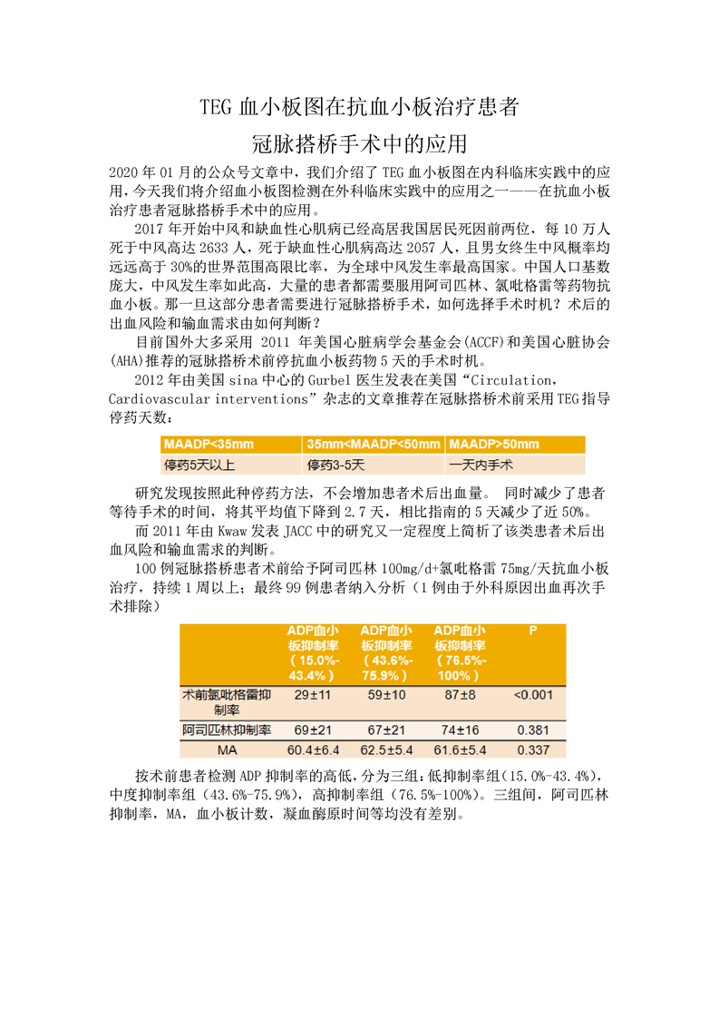 TEG血小板图在抗血小板治疗患者冠脉搭桥手术中的应用