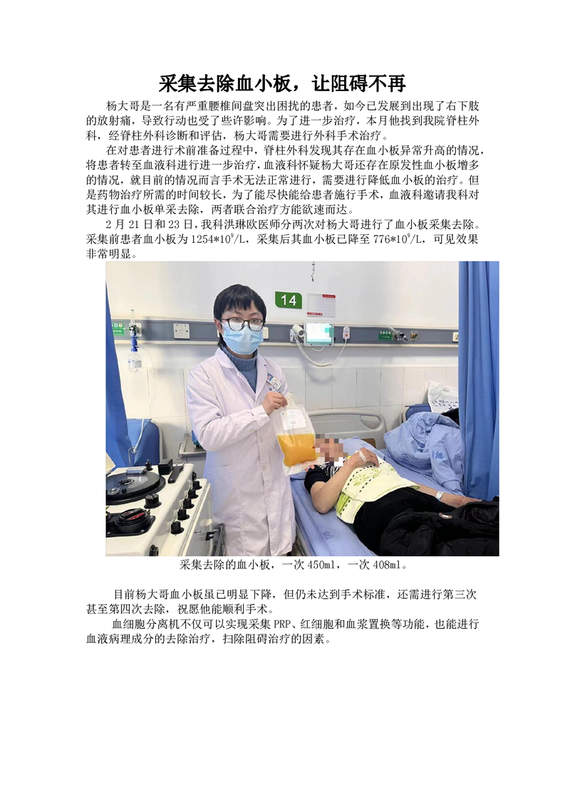 采集去除血小板,让阻碍不再