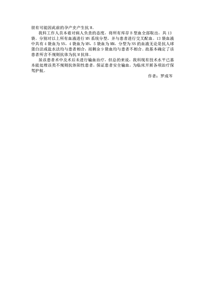 一例血型单特异性抗体(不规则抗体)阳性处理经过