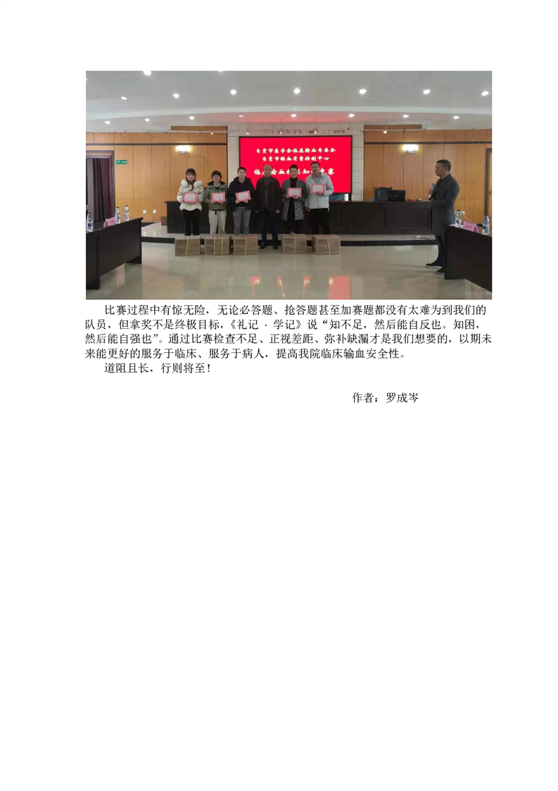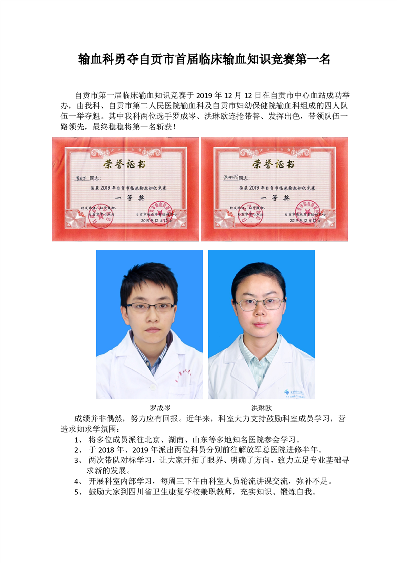 输血科勇夺自贡市首届临床输血知识竞赛第一名