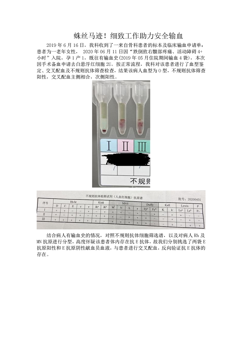 蛛丝马迹!细致工作助力安全输血