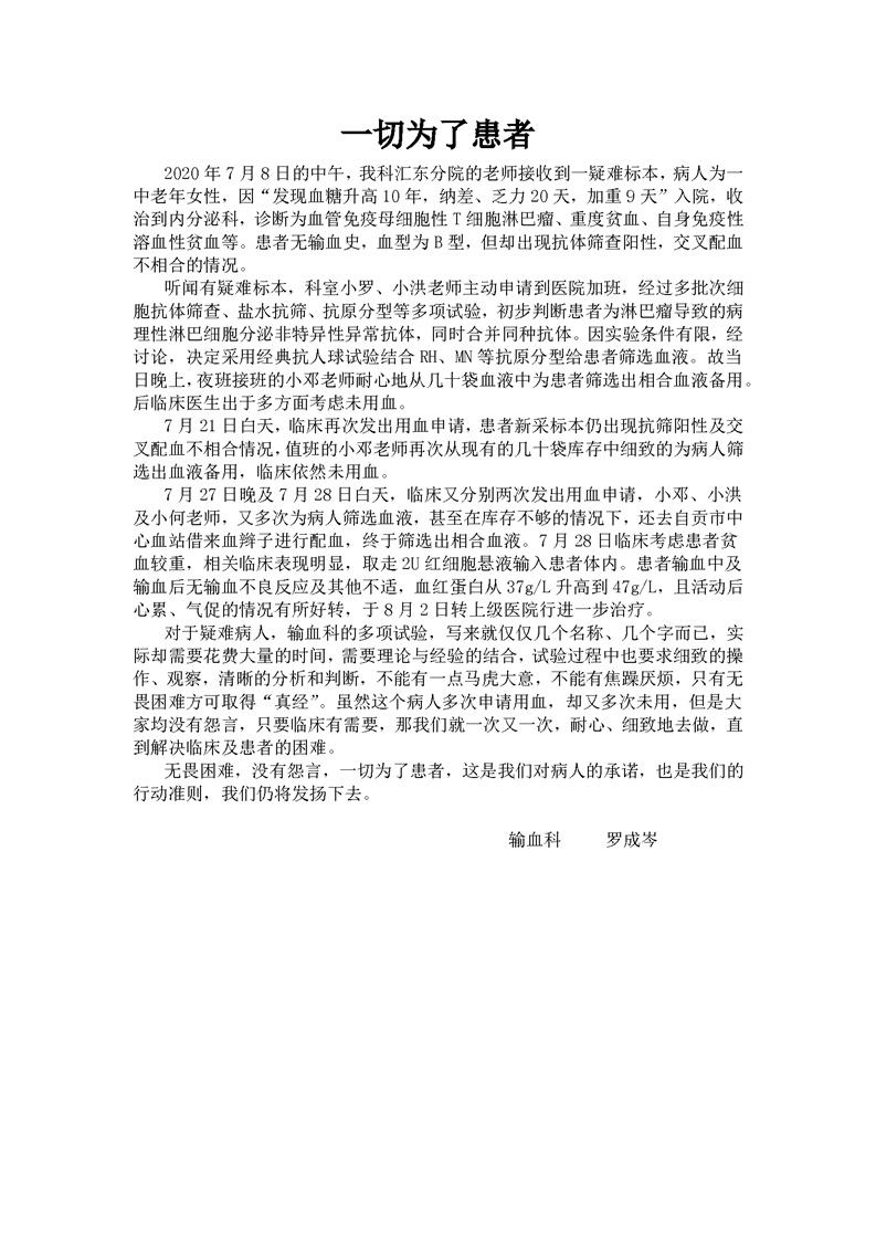一切为了患者