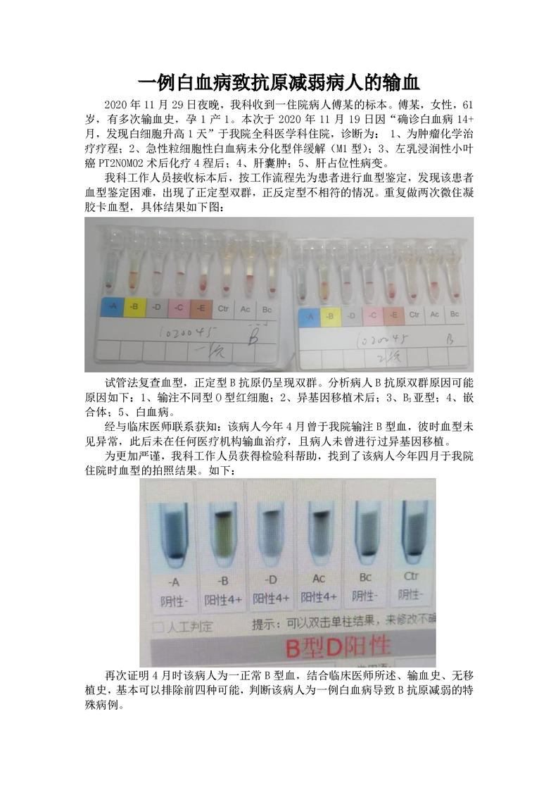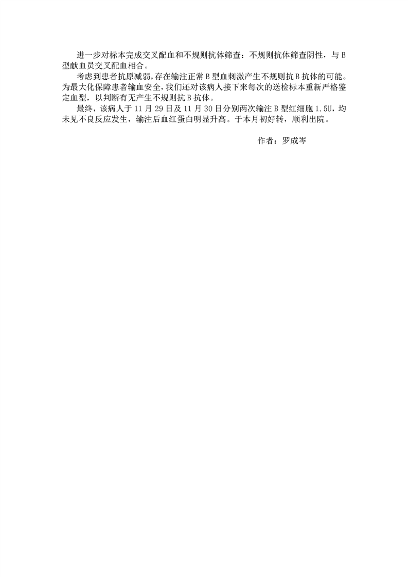 一例白血病致抗原减弱病人的输血