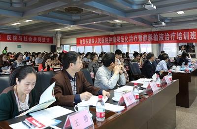 为进一步加强临床医护人员规范化肿瘤治疗的认识,共同加强学习交流,达到肿瘤综合治疗的最佳疗效。由自贡市医学会主办,自贡市第四人民医院肿瘤科承办的2017年四川省医学继续教育项目“肿瘤规范化治疗暨静脉输液治疗”培训班于4月15日在市四医院多功能厅隆重召开。