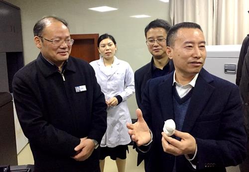 在数字医学中心,黄主任了解了数字医学中心目前的发展情况,参观了数字医学中心打印的模具。黄主任握着一件3D打印的婴儿模型,表示出较大的兴趣。他认为我院在全省率先开展3D打印技术是一件“前瞻”的行为。