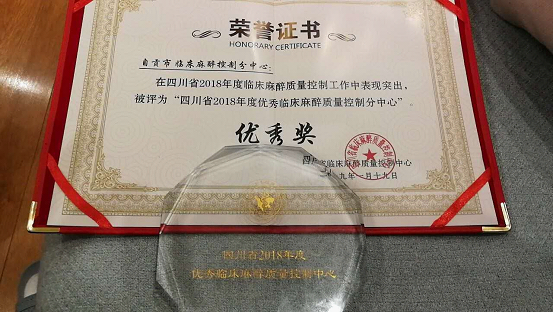 近日,在四川省2018年度优秀临床麻醉质量控制中心评比中,自贡市临床麻醉质量控制分中心获得优秀奖。