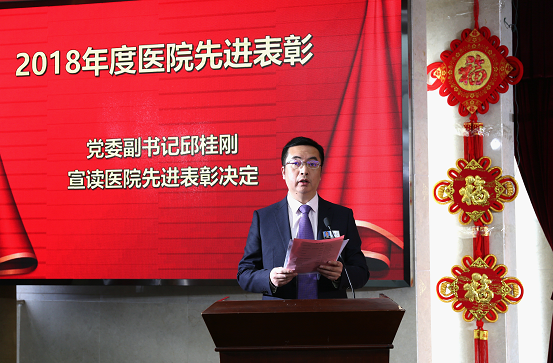 2018年,我们一起走过,成绩来之不易。展望2019年,我们将团结一心,全面推动医院高质量发展,努力做好人才大建设、学科大发展、服务大提升等重点工作,为医院发展再立新功,再创佳绩。最后,刘院长代表医院向全院干部职工致以春节的问候,祝大家身体健康、工作顺利、家庭幸福、万事如意。