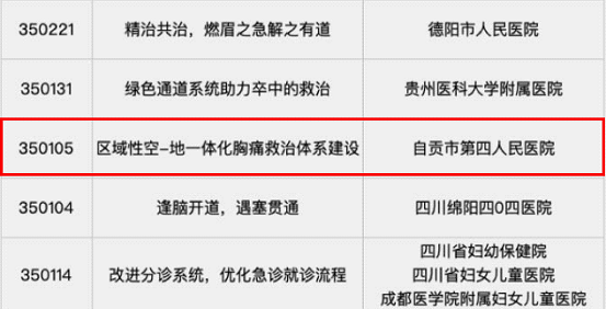 9月5日(今),由国家卫生健康委员会医政医管局指导,健康界主办2019全国医院擂台赛(西南赛区)评选的优秀案例新鲜出炉。自贡市第四人民医院《门诊预约案例》《麻醉门诊全维度改善患者就医体验》《区域性空—地一体化胸痛救治体系建设》从西南赛区515个案例中脱颖而出,被评为优秀案例。