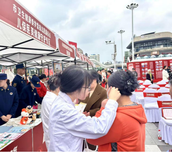 活动现场,我院组建医疗志愿者团队在市卫健委指定服务点设立健康义诊专区。由儿科、皮肤美容科专家为群众提供疾病咨询、健康筛查服务。通过发放健康手册、开展一对一健康指导等形式,系统宣讲儿童保健、皮肤防护等实用医学知识,有效提升群众健康管理意识。