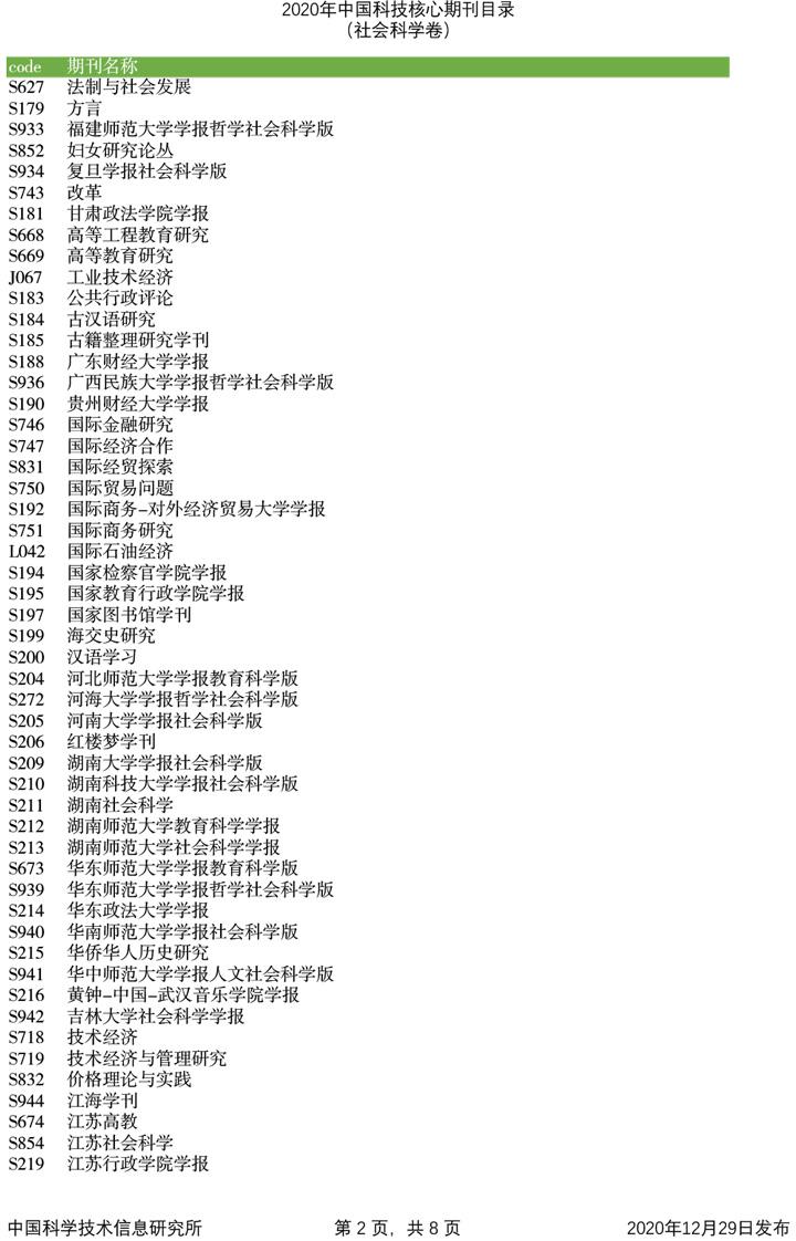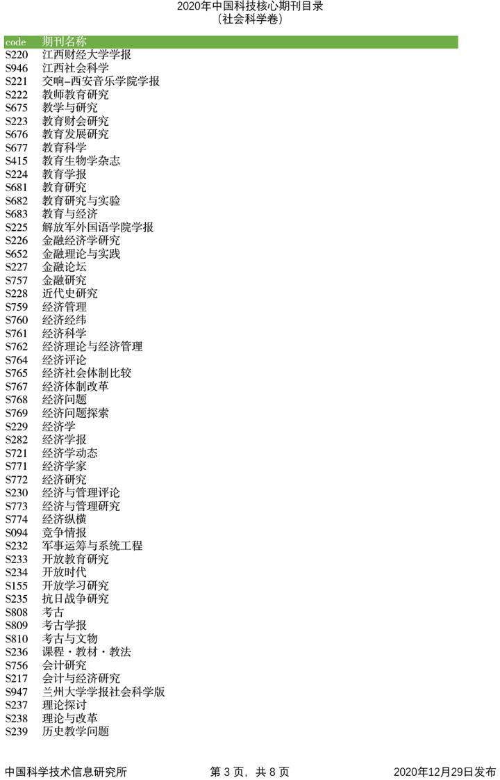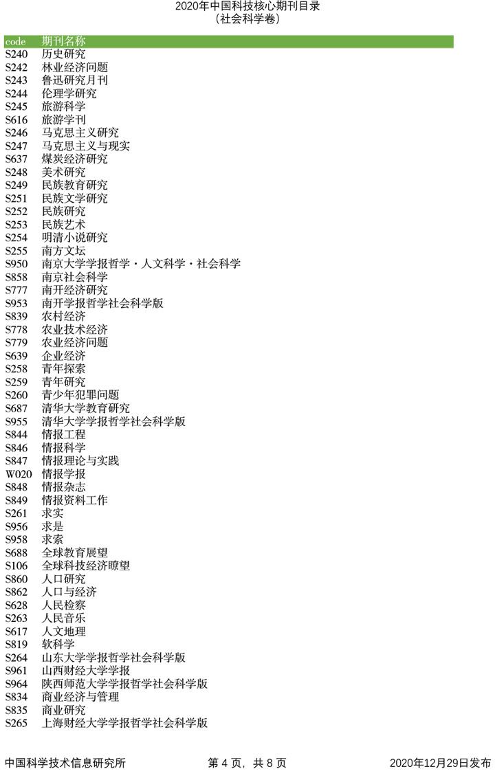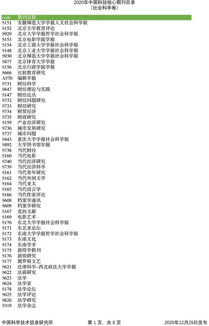 2020年中国科技论文统计源期刊目录(社会科学卷)