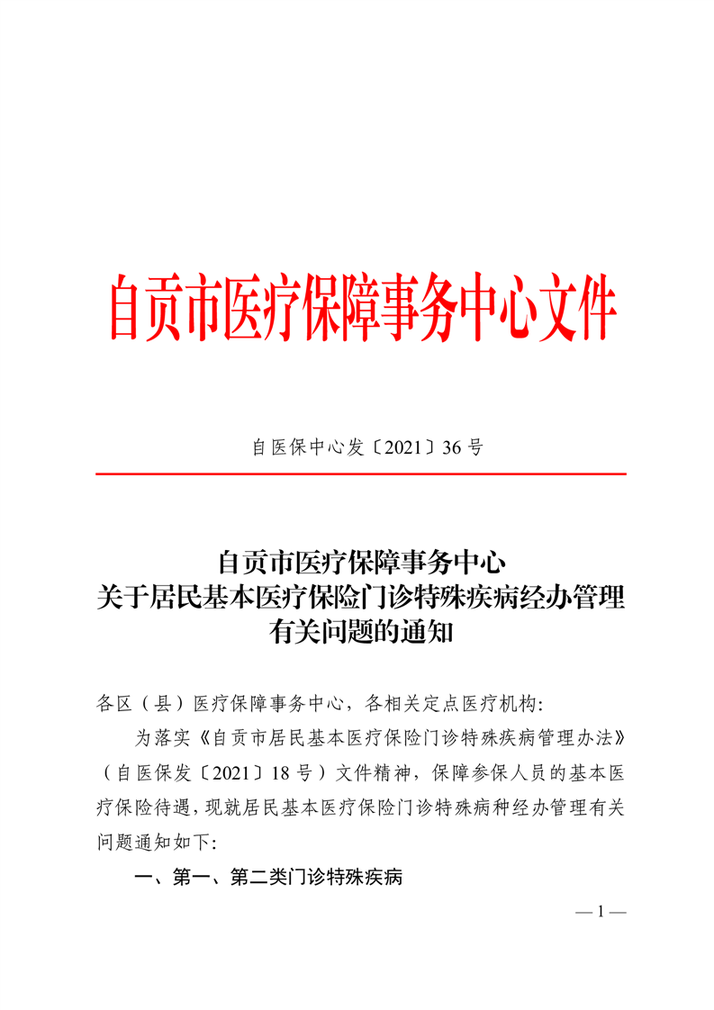 自医保中心发〔2021〕36号关于居民基本医疗保险门诊特殊疾病经办管理有关问题的通知