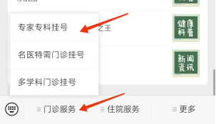 第二步:选择门诊服务→专家专科挂号进入互联网医院首页