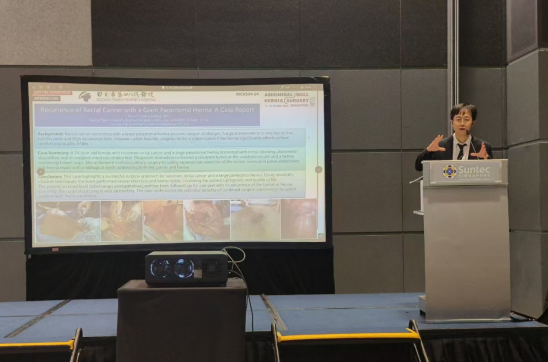 近日,汇东普外科兰柯医生代表医院参加了由亚太疝协会(Asia Pacific Hernia Society, APHS)在新加坡主办的世界腹壁疝外科大会,并在这一高水平的国际学术盛会上用流利的英语进行了精彩的成果汇报与交流。