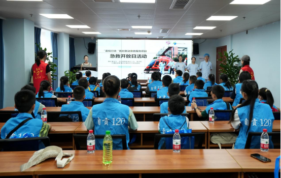 在急诊科护士长王雪莲带领下,参与者们依次参观了抢救室、120调度中心,观摩了救护车接诊全流程演示。在随后举行的现场教学中,医务人员就心肺复苏术、溺水急救、外伤处理等急诊知识进行了传授,同学们在医务人员指导下进行了练习。活动中,医院还通过视频展播、文化墙讲解等形式,传递了“人人学急救,急救为人人”的理念。活动最后,主办方为参与者颁发了“蓝焰急救员”纪念证书,鼓励大家成为社区急救知识的“传播者”。