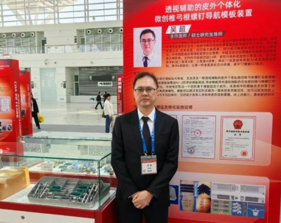 由骨科中心主任吴超研发的《透视辅助的皮外个体化微创椎弓根螺钉导航模板装置》专利,成功入选“COA20年风采展”专利展区,并实现连续三年参展。吴超主任在大会上的4项发言紧扣“数智骨科”主题,聚焦增强现实、内镜技术及人工智能算法在脊柱手术中的创新应用,展现了其在智能化与精准诊疗方面的前瞻探索。